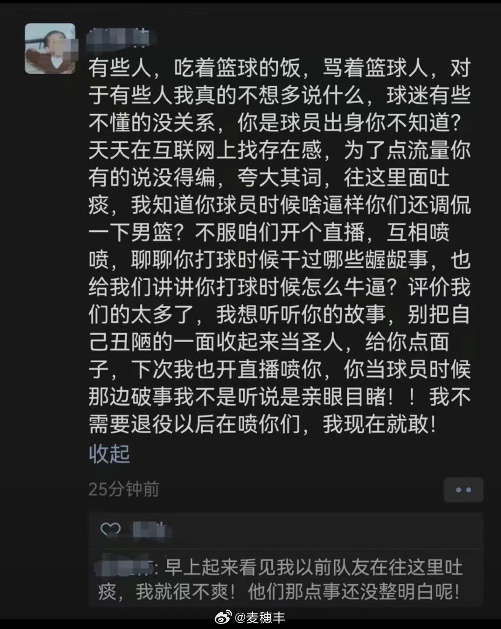 2月28日消息 今天,國內(nèi)媒體人麥穗豐今日曬出了趙繼偉的朋友圈截圖和郭曉鵬與高尚連線談中國男籃的視頻。
