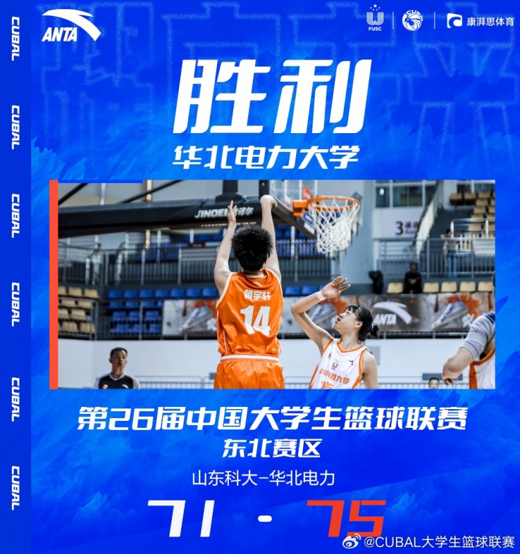 5月3日消息 CUBAL一級聯(lián)賽東北賽區(qū)女子D組第一輪,山東科大今日對陣華北電力。