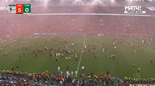 4月15日消息 德甲第29輪,勒沃庫森5-0不萊梅,提前5輪奪得聯(lián)賽冠軍。等不及了!球迷全部沖入球場??!比賽沒補時直接結束!