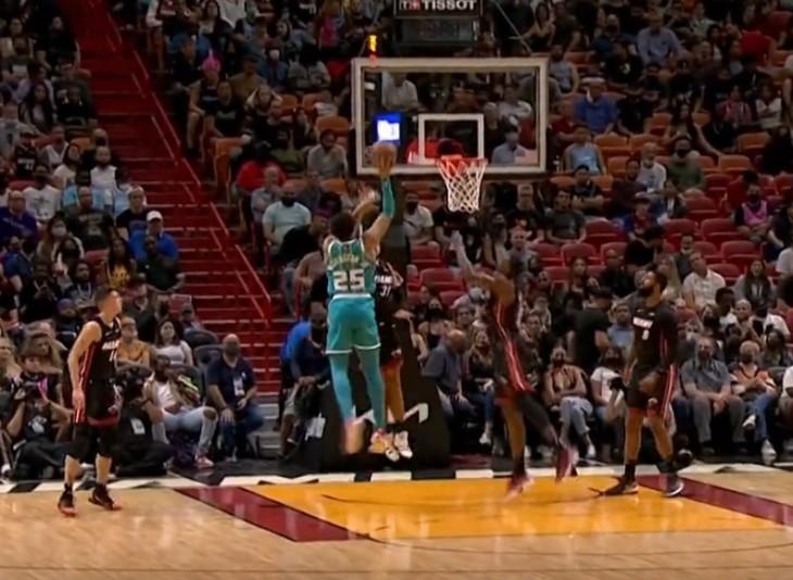 易邊再戰(zhàn),兩隊(duì)的進(jìn)攻效率開(kāi)始下降,前兩分鐘的時(shí)間里都未能得分,鮑爾突破造殺傷才終于打破僵局,羅賓遜外線射進(jìn)三分,但海沃德立馬就遠(yuǎn)投還以顏色,黃蜂本節(jié)開(kāi)始發(fā)起追分,布里奇斯連續(xù)命中遠(yuǎn)投,烏布雷空切上籃打成2+1,暫停調(diào)整過(guò)后巴特勒強(qiáng)殺籃下終于止血,希羅也是投進(jìn)三分,熱火連拿五分穩(wěn)住局勢(shì),史密斯剛過(guò)半場(chǎng)送出長(zhǎng)傳助布里奇斯空接暴扣得手。三節(jié)結(jié)束,熱火84-75領(lǐng)先黃蜂。