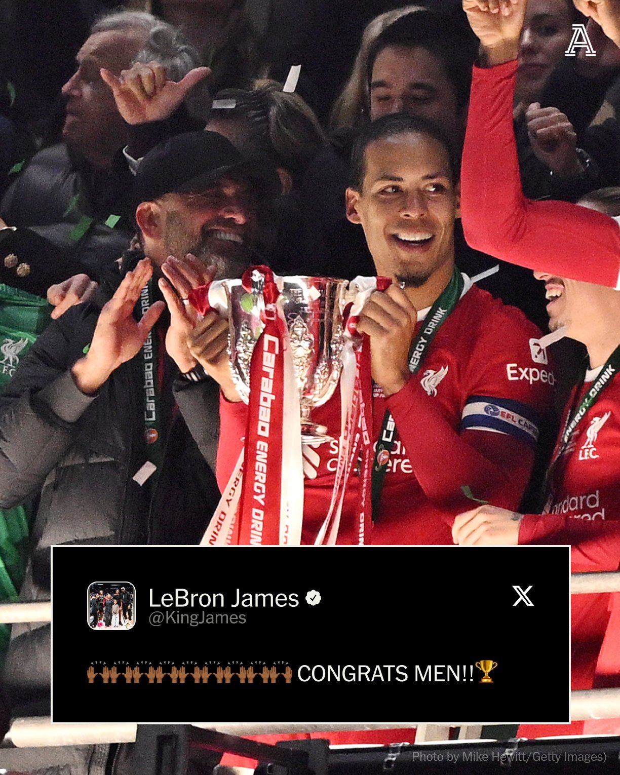 害看球呢!詹姆斯社媒祝賀利物浦奪冠 待會(huì)兒還要客戰(zhàn)太陽(yáng)
