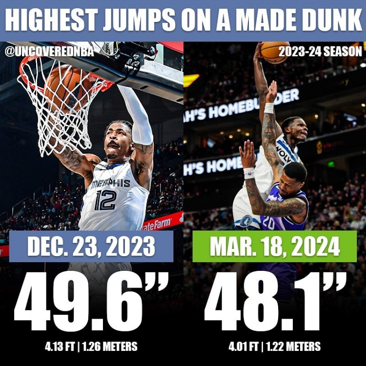 華子隔扣科林斯起跳高度為1.22米 本季第二高&僅次于莫蘭特空接