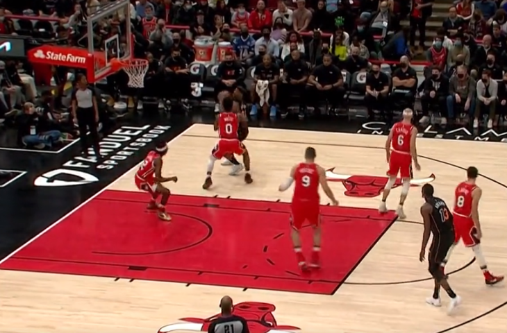 比賽開(kāi)始后洛瑞連續(xù)上籃打進(jìn),拉文和格林連中三分給予回應(yīng),隨后雙方進(jìn)攻停滯,阿德巴約連續(xù)暴扣破僵,公牛立刻請(qǐng)求暫停,中段卡魯索劈扣打成2+1,鄧羅外線開(kāi)張飚中三分,巴特勒和武切維奇分別打進(jìn),熱火繼續(xù)占優(yōu),末段馬丁和鄧羅連中三分,德羅贊連罰帶投及時(shí)回應(yīng),首節(jié)結(jié)束時(shí)熱火27-20領(lǐng)先。