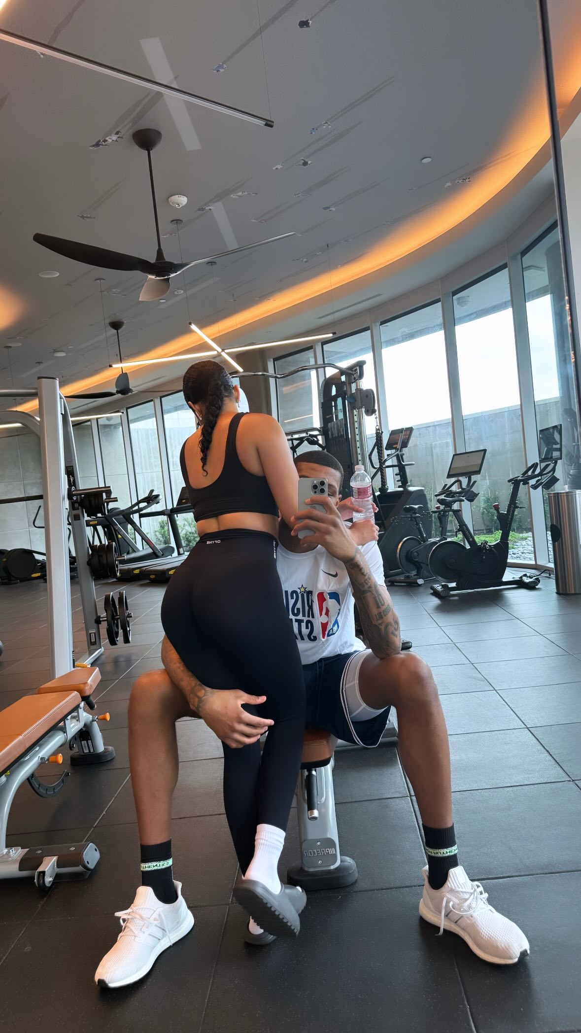 ????女友身穿賈巴里-史密斯火箭10號(hào)球衣 拍攝泳池性感美照