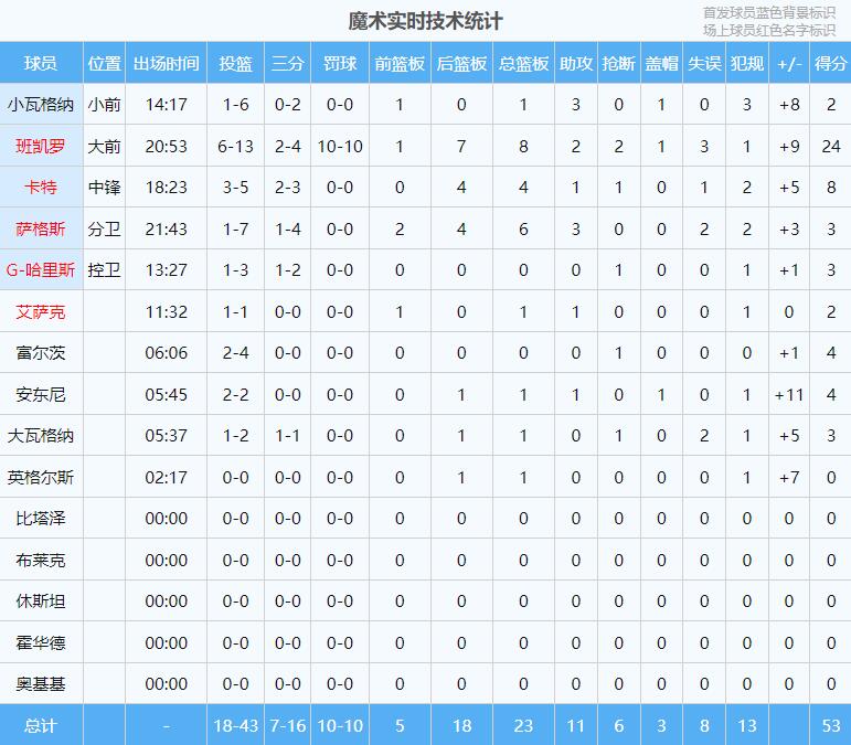騎士搶七半場落后魔術(shù)10分:班凱羅閃耀 加蘭“犯罪”米切爾打鐵