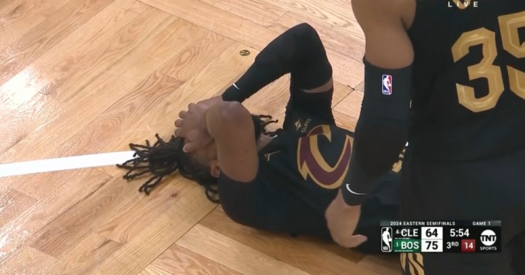 布朗攔截時胳膊肘打到加蘭面部 加蘭眼眶刮了個口子
