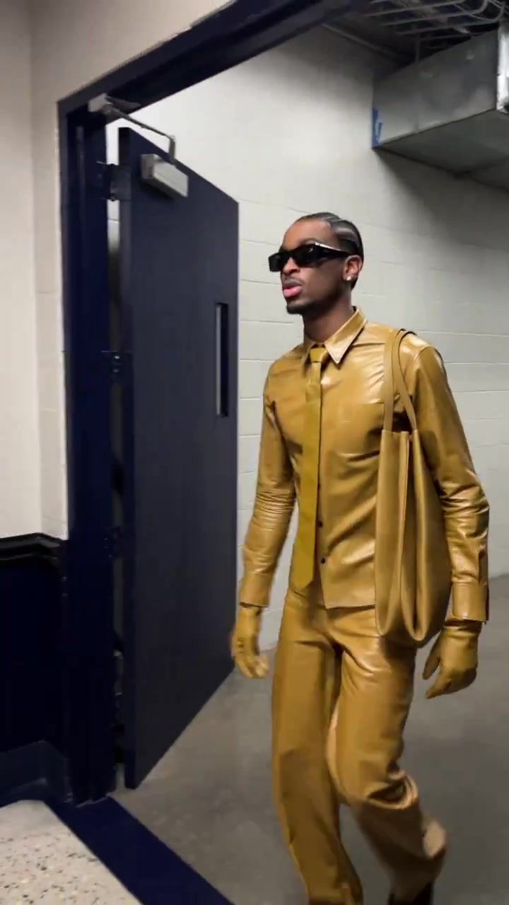 現(xiàn)役最潮之一!亞歷山大今日OOTD:金色全皮套裝(含領(lǐng)帶+手套)