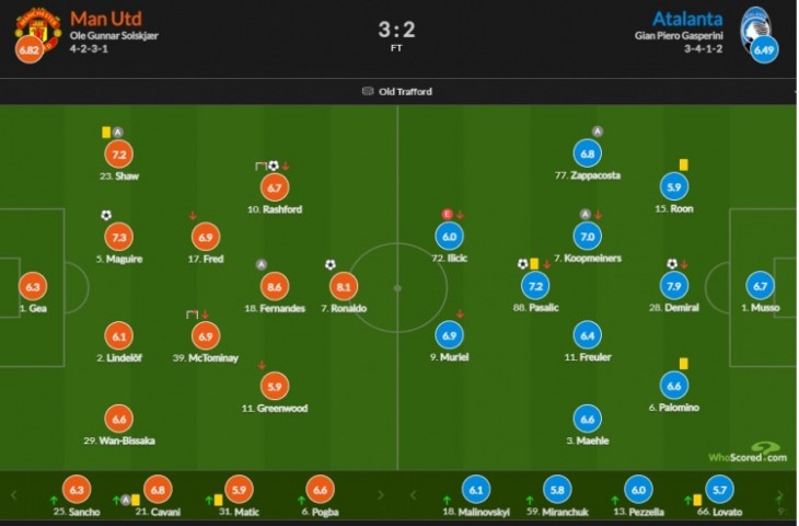 曼聯(lián)vs亞特蘭大評(píng)分:B費(fèi)8.6分全場(chǎng)最高 C羅8.1分