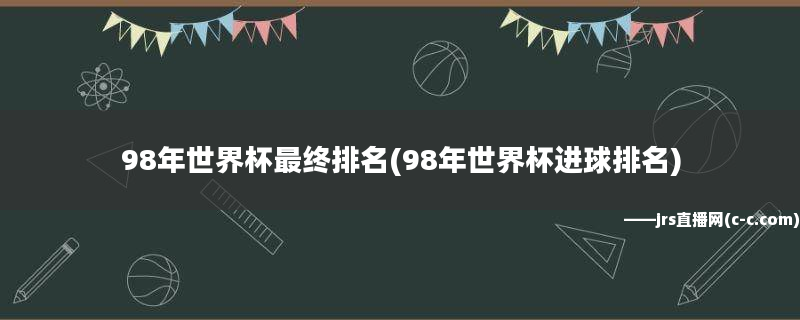 1 法國 2 巴西1998年法國世界杯 3 克羅地亞 4 荷蘭 5 意大利 6 阿根廷 7 德國 8 丹麥 9 英格蘭 10 前南斯拉夫 11 羅馬尼亞 12 尼日利亞 13 墨西哥1 13 巴拉圭 15 挪威 16 智利 17 西班牙 18 摩洛哥 19 比利時 20 伊朗 21 哥倫比亞 22 牙買加 23 奧地利 24 南非 25 喀麥隆 26 突尼斯 27 蘇格蘭 28 沙特 29 保加利亞 30 韓國 31 日本 32 美國