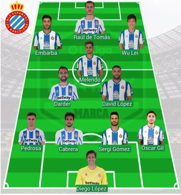 西班牙人:迭戈-洛佩斯、佩德羅薩、卡夫雷拉、塞爾吉-戈麥斯、奧斯卡-希爾、達(dá)德爾、大衛(wèi)-洛佩斯、梅倫多、恩巴爾巴、德托馬斯、武磊