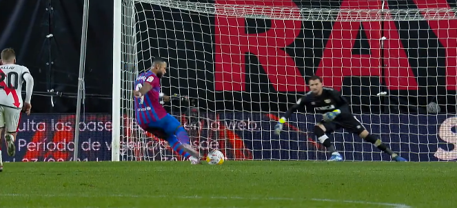 第71分鐘,德佩帶球突入禁區(qū)左側(cè)被巴倫丁踢倒在地,主裁判指向點球點,巴薩獲得點球機會,德佩親自操刀主罰,球被門將迪米特列夫斯基撲出,隨后德佩迅速跟進補射,迪米特列夫斯基搶先將球沒收。德佩上前補射的過程中,踢到了迪米特列夫斯基的頭部。