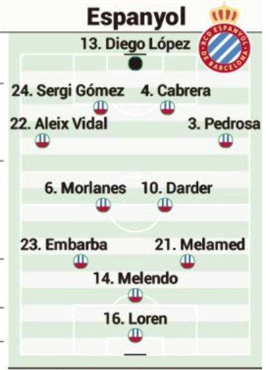 阿斯預(yù)測西班牙人首發(fā):莫隆頂替德托馬斯出戰(zhàn) 武磊替補