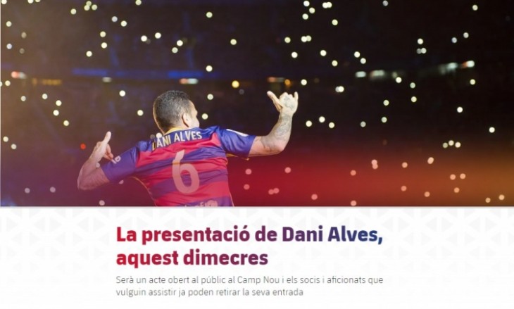 由于注冊的緣故,阿爾維斯要到明年1月才能代表巴薩出場。