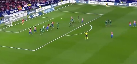 第23分鐘,依舊是馬競的前場施壓,卡拉斯科左路下底傳中球找到禁區(qū)內(nèi)格列茲曼,但是格列茲曼的近距離打門被后衛(wèi)封堵。