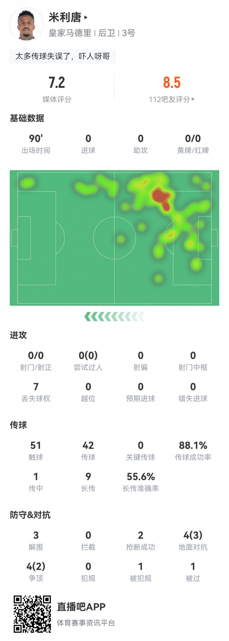 4月27日消息 本輪西甲,皇馬1-0客勝皇社。此役米利唐時隔258天再次首發(fā),球員全場重點數(shù)據(jù)如下↓