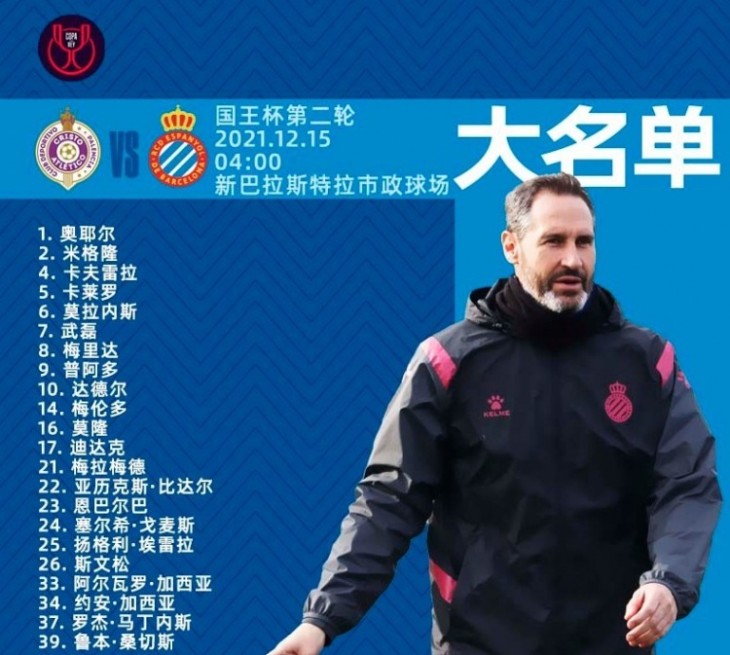 北京時間12月14日消息? 明天凌晨4點,西班牙人將在國王杯第二輪中迎戰(zhàn)克瑞斯圖競技,球隊公布了本場比賽的大名單,武磊在列。