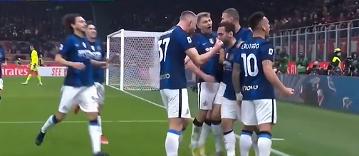 第16分鐘,托納利主罰任意球開出,德弗里頭球解圍時不慎將球頂進自家大門,AC米蘭1-1國際米蘭!↓