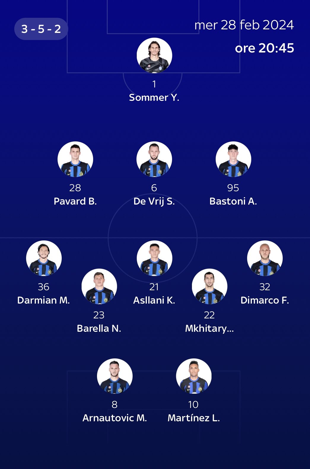 2月27日消息 北京時(shí)間2月29日03:45,意甲第21輪,國(guó)米主場(chǎng)對(duì)陣亞特蘭大,意大利天空體育預(yù)測(cè)國(guó)米本場(chǎng)首發(fā),此前遭遇流感的索默回歸,鋒線(xiàn)上勞塔羅搭檔阿瑙托維奇。
