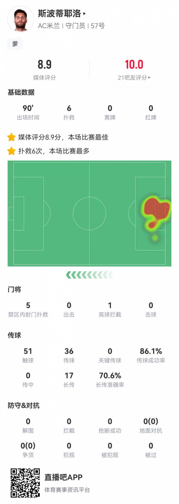 臨危受命!斯波蒂耶洛本場(chǎng)數(shù)據(jù):6次撲救,獲評(píng)全場(chǎng)最高8.9分