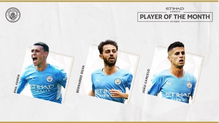 北京時(shí)間10月29日消息? 今天曼城官方公布了隊(duì)內(nèi)十月最佳球員的三人候選名單,分別為福登、B席、坎塞洛。