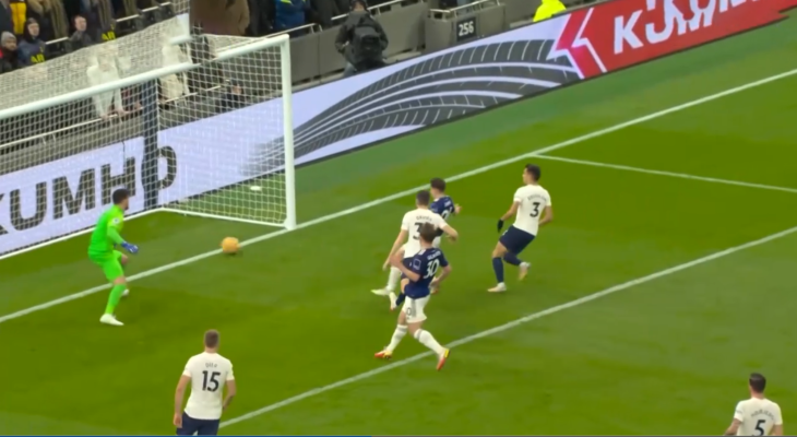 第67分鐘,小盧卡斯中路拿球后突破穿襠庫克后被其身后放倒,裁判也給了庫克黃牌。熱刺獲得位置極佳的任意球。