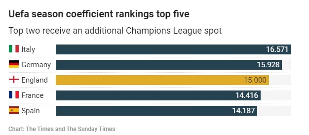對(duì)一支英國(guó)俱樂(lè)部來(lái)說(shuō),獲得歐冠席位意味著一筆巨大的收入,至少包括8000萬(wàn)英鎊的獎(jiǎng)金和門(mén)票收入,此外還有其他與贊助商相關(guān)的收入。