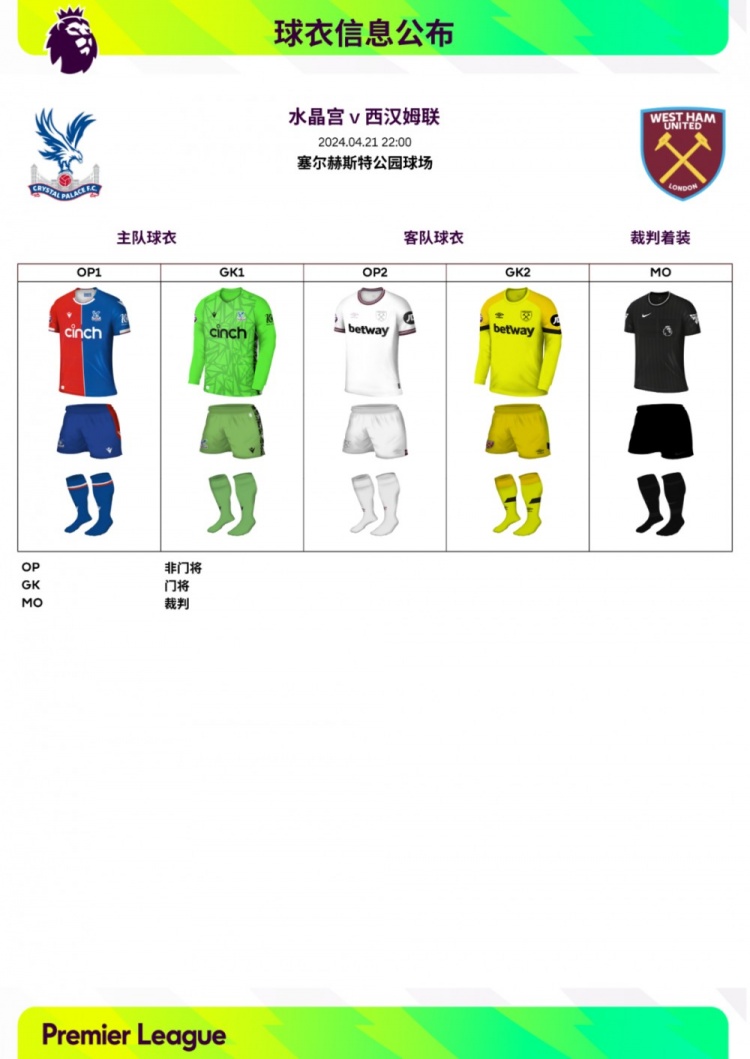 4月20日消息 英超聯(lián)賽官方公布了第34輪比賽各隊的球衣信息,阿森納、利物浦將身穿主場球衣出戰(zhàn)客場比賽。