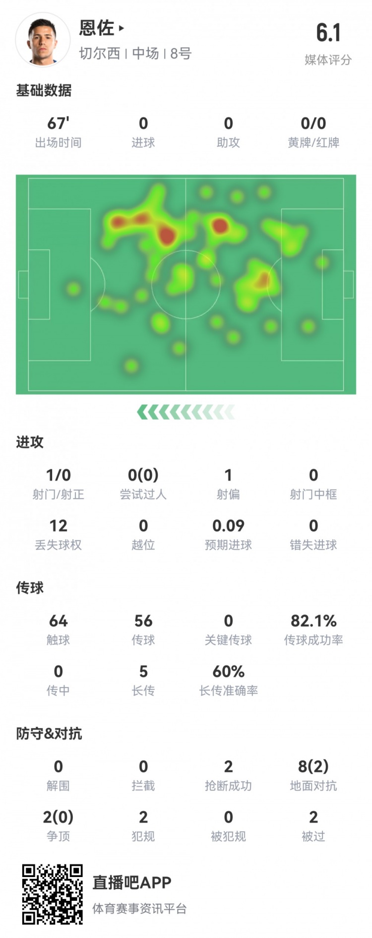 恩佐數(shù)據(jù):10次對(duì)抗成功2次,12次丟失球權(quán),2次被過(guò),評(píng)分僅6.1