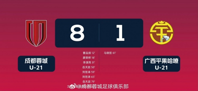 后備力量!U-21聯(lián)賽第3輪,成都蓉城8-1戰(zhàn)勝廣西平果哈嘹