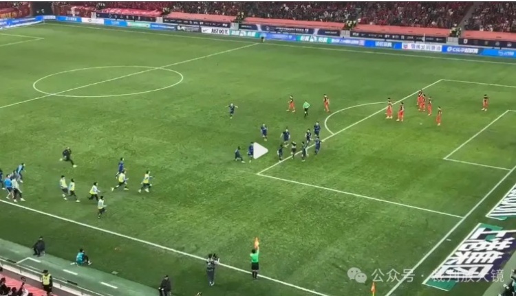 在申花替補都沖進球場慶祝時,此時很明顯的看出,助理裁判員已經(jīng)舉旗示意越位了,并且在直播中很明顯捕捉到和傅明在交流,而傅明也是跑向助理和助理進行交流。在助理裁判員舉旗示意越位的情況下,裁判員一定會跟隨助理裁判員,因為此時VAR也會檢查。